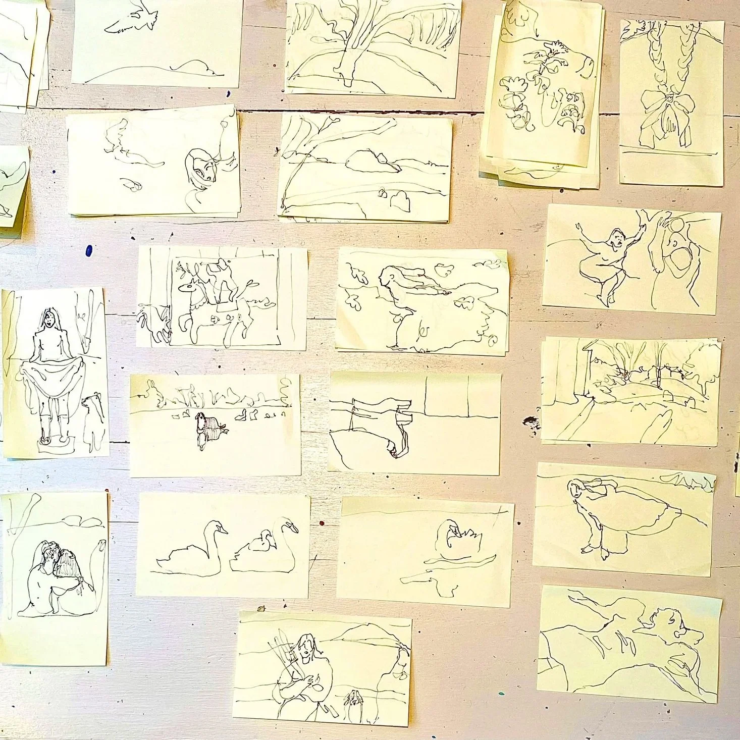 We asked all the members at APT to show us things they make, but don’t normally include in exhibitions. And what they have selected includes post it notes of ideas, drawings of their child’s Lego creations, a rebus and beautiful oil painting rags. If you know the artist’s work already, we hope you may be amused, surprised and intrigued. If you don’t, we hope you will feel curious and inspired by what you see here to search each artist’s work further, either through a studio visit at the Open Studios weekend on 20th and 21st September or online.
